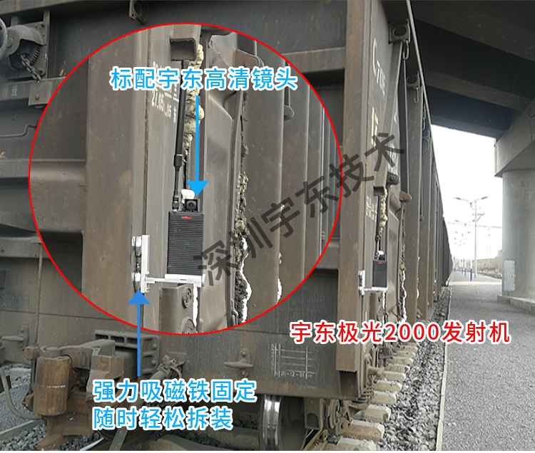 磁鐵架固定機(jī)器底部1/4螺紋內(nèi),通過磁鐵吸在 列車掛鉤位置 |