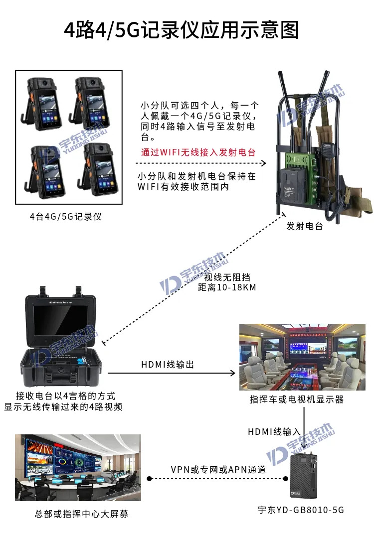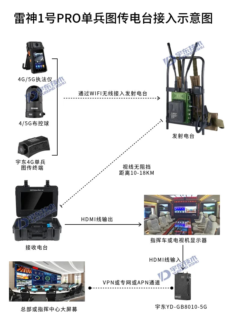 宇東技術雷神1號PRO背負式高清單兵無線圖傳電臺,是公司針對應急救援指揮、部隊拉練演習、公安、反恐作戰(zhàn)、消防救援、邊防執(zhí)勤、海警海關巡檢、森林消防等,在突發(fā)重大事件,斷網(wǎng)斷電,通信中斷的情況下,現(xiàn)場工作人員通過宇東雷神1號PRO單兵無線圖傳電臺,可以和指揮部雙向語音通話對講,把現(xiàn)場采集的數(shù)據(jù)實時無線傳輸?shù)街笓]車/臨時指揮部大屏幕,讓指揮部領導對現(xiàn)場情況一目了然,節(jié)省了到達現(xiàn)場的時間,可快速做緊急指揮調(diào)度,最大限度的減少突發(fā)事件帶來的各種損失。